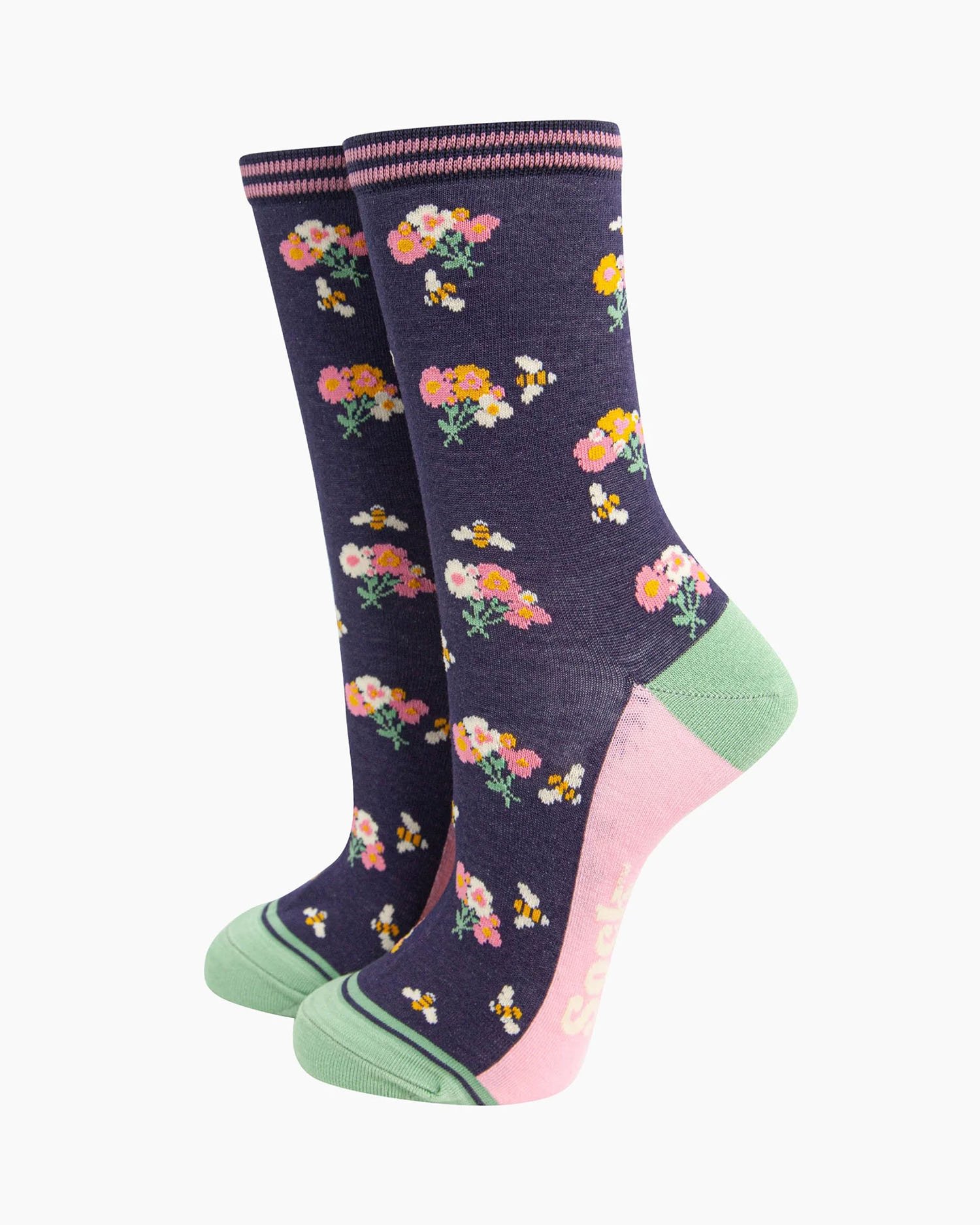Chaussettes bleu marine avec un imprimé fleuri