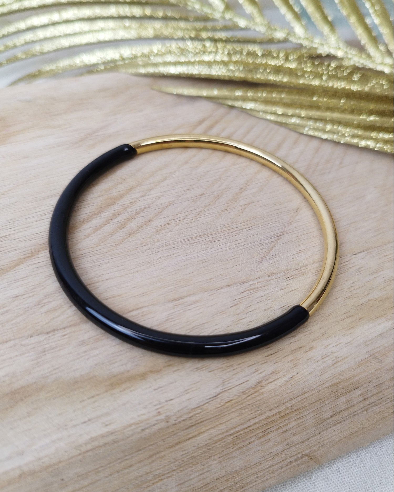 Bracelet jonc bicolore en acier inoxydable et résine
