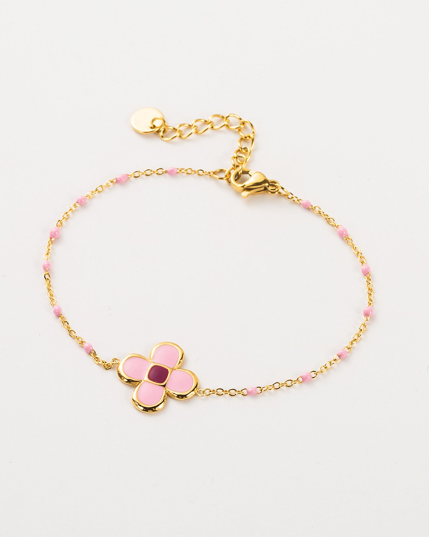 Bracelet chaine en acier doré avec une fleur à 4 pétales