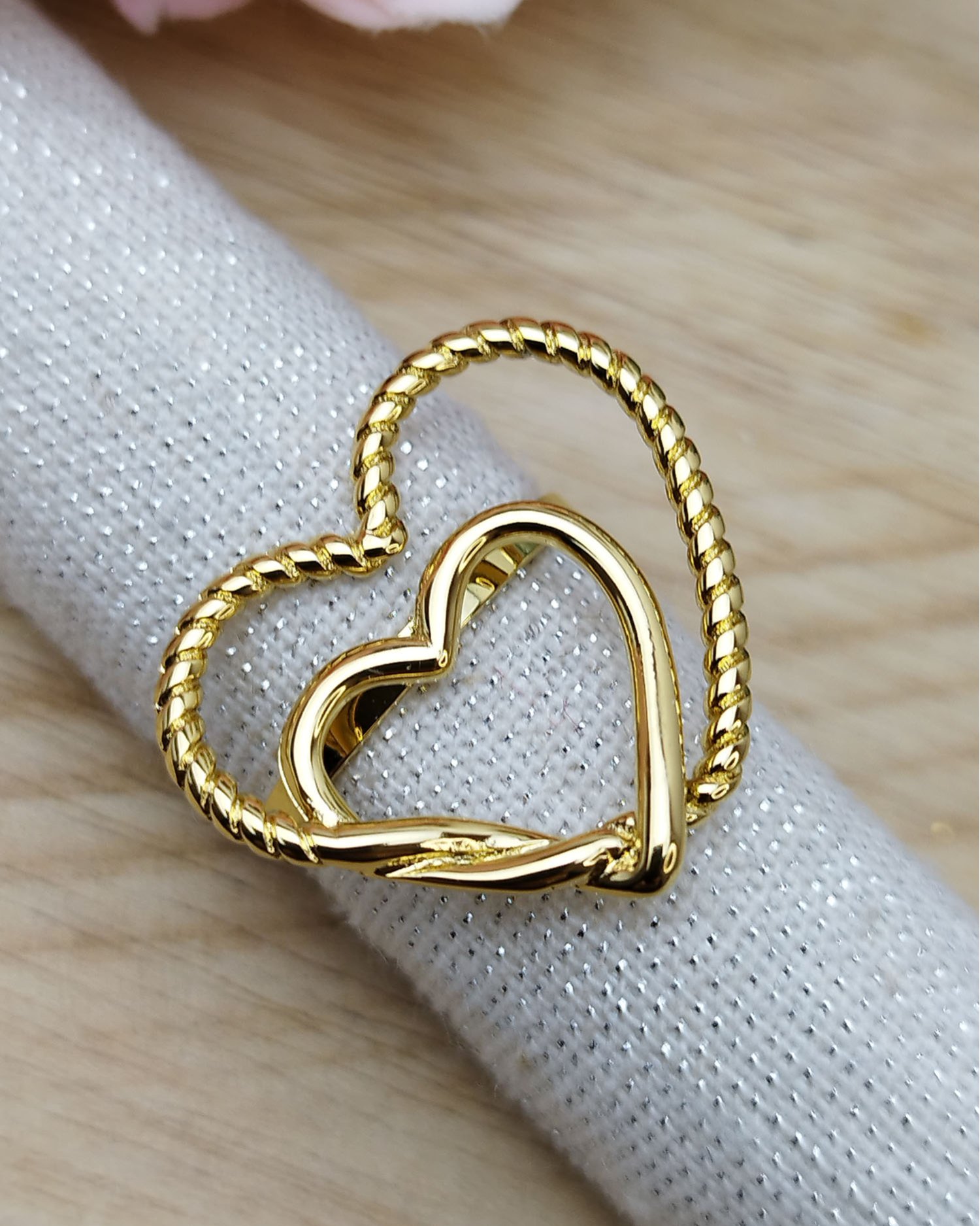 Bague dorée en acier inoxydable en forme de coeur