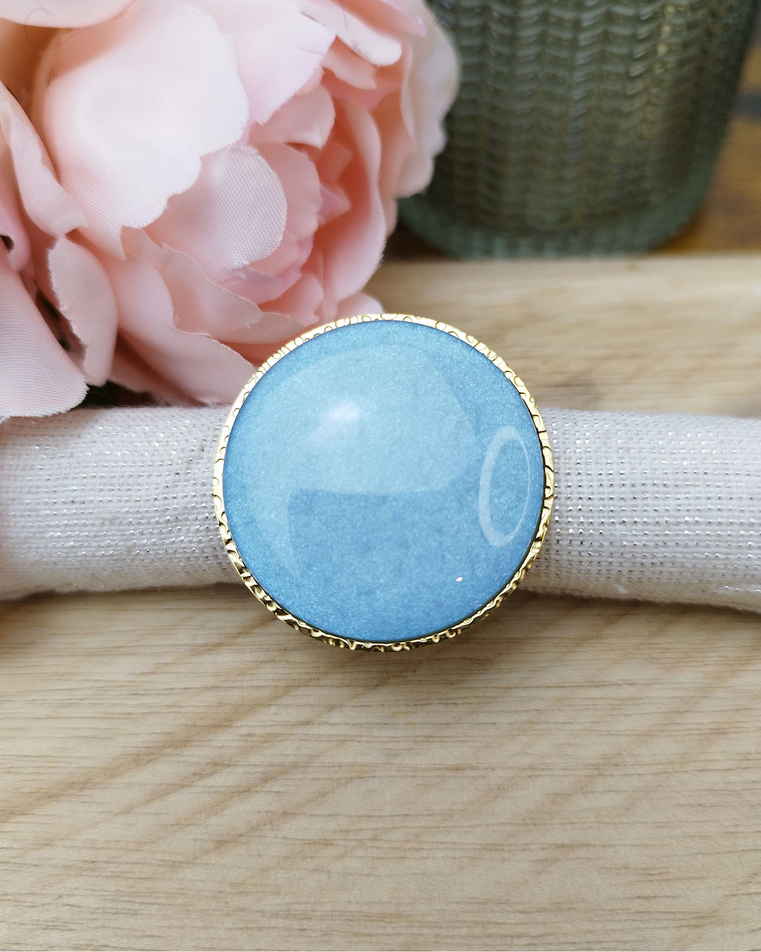 Bague dorée et bleue claire en acier inoxydable