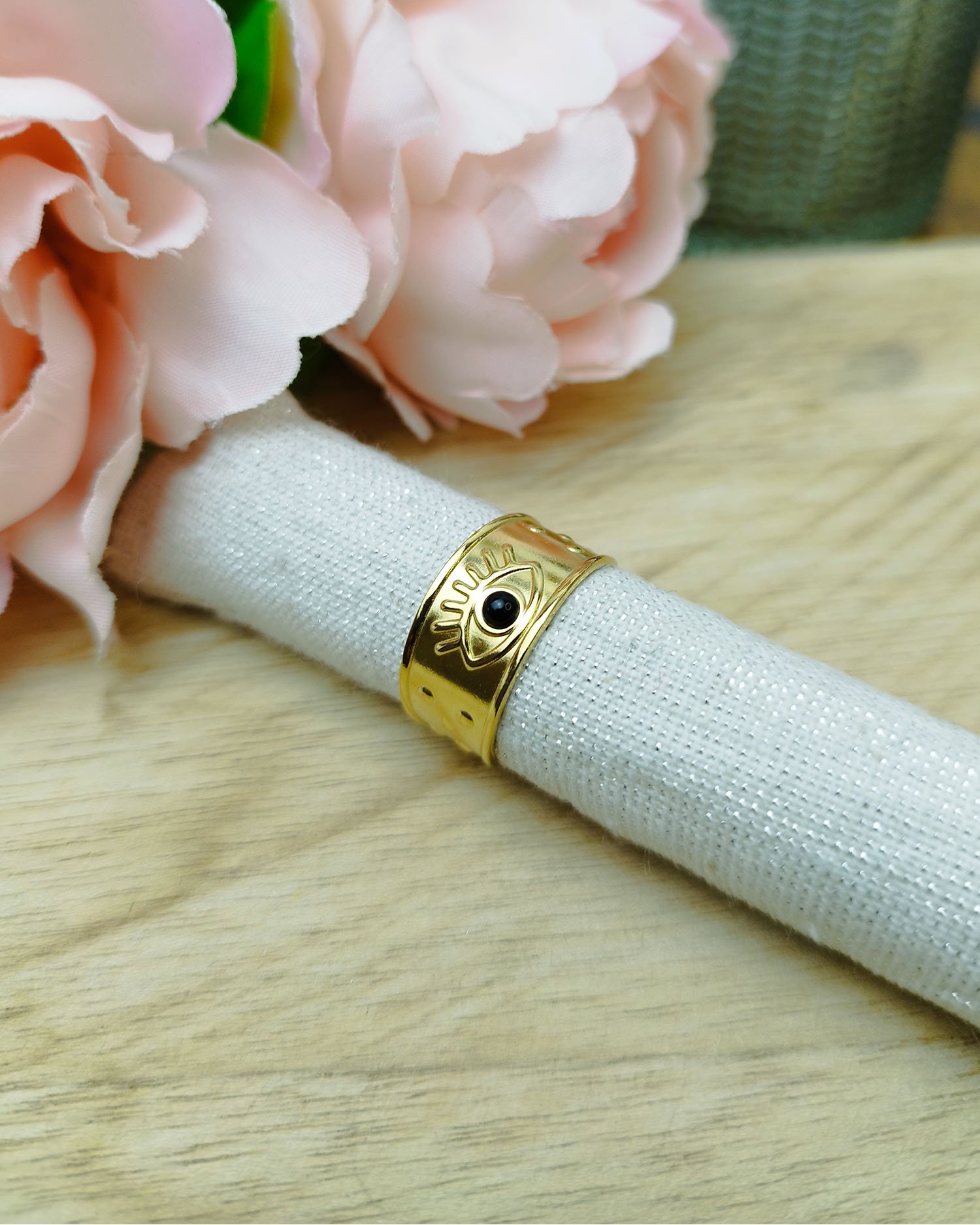 Bague œil porte-bonheur en acier inoxydable doré