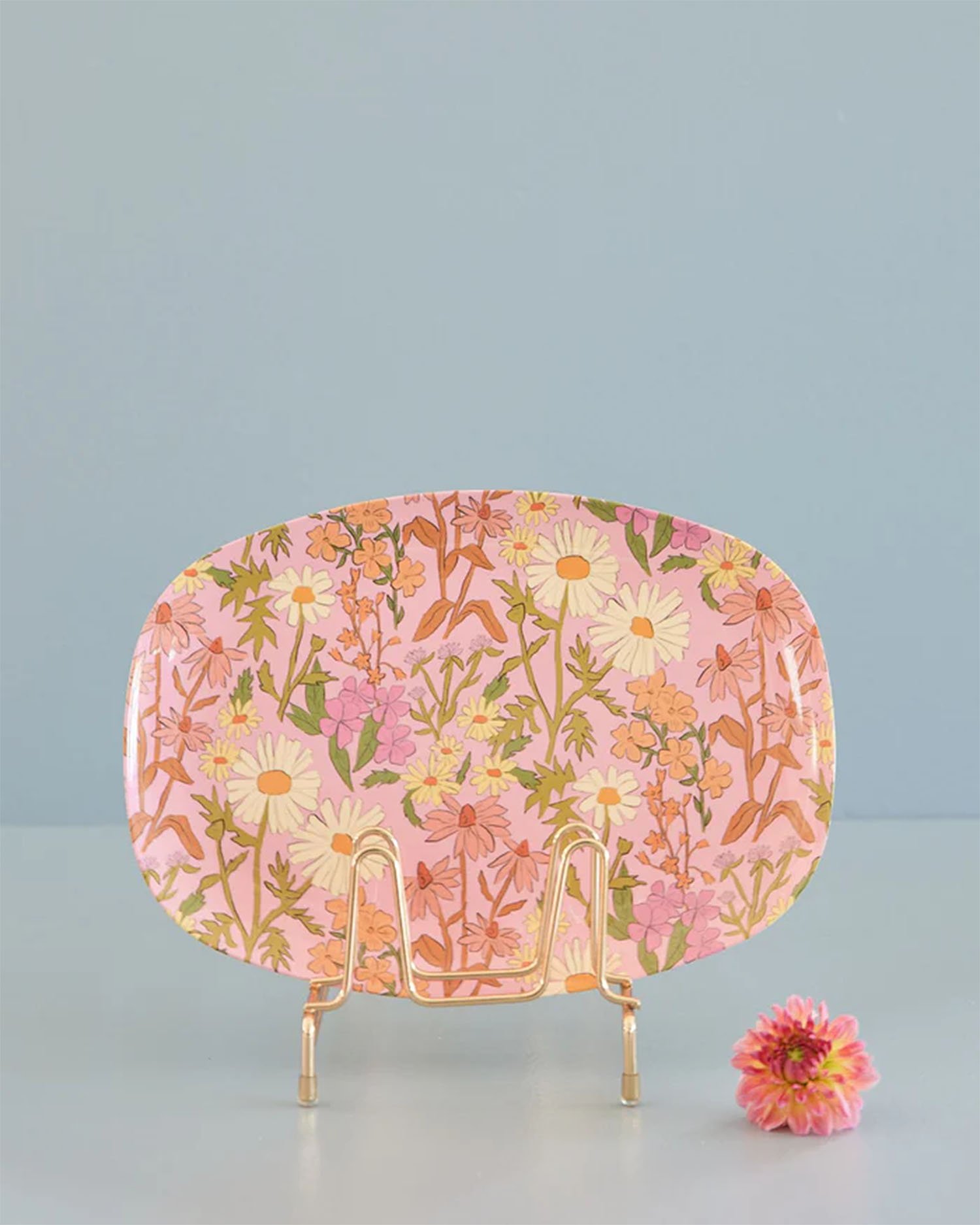 Ce plateau rectangulaire en mélamine est conçu pour un usage quotidien. Durable et facile à nettoyer, vous pourrez vous en servir comme plat de service, plateau à tapas ou encore d'assiette principale. Son motif "Daisy Dearest" reflète l'univers coloré de la marque danoise Rice.