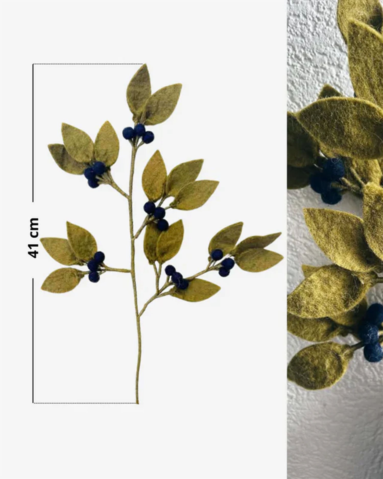 Branche de myrtille permanente en laine feutrée