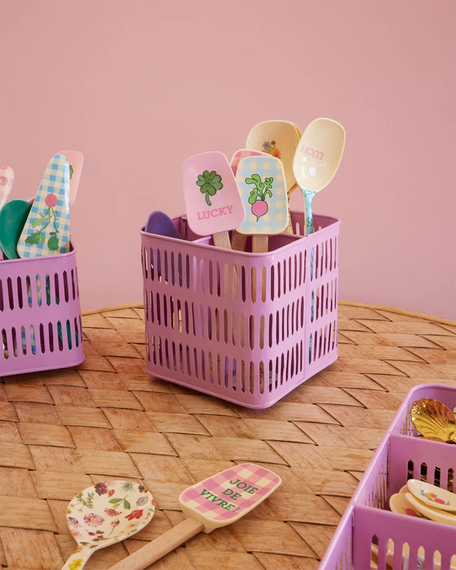 Panière pour ustensiles en métal rose
