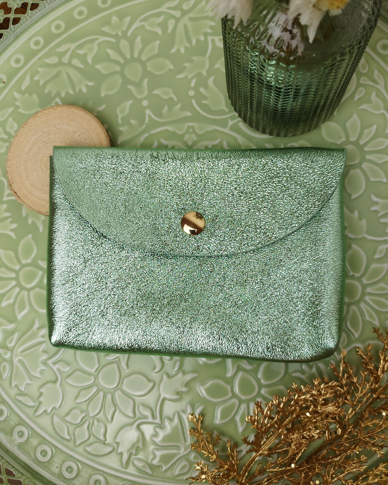 • Pochette enveloppe en cuir irisé