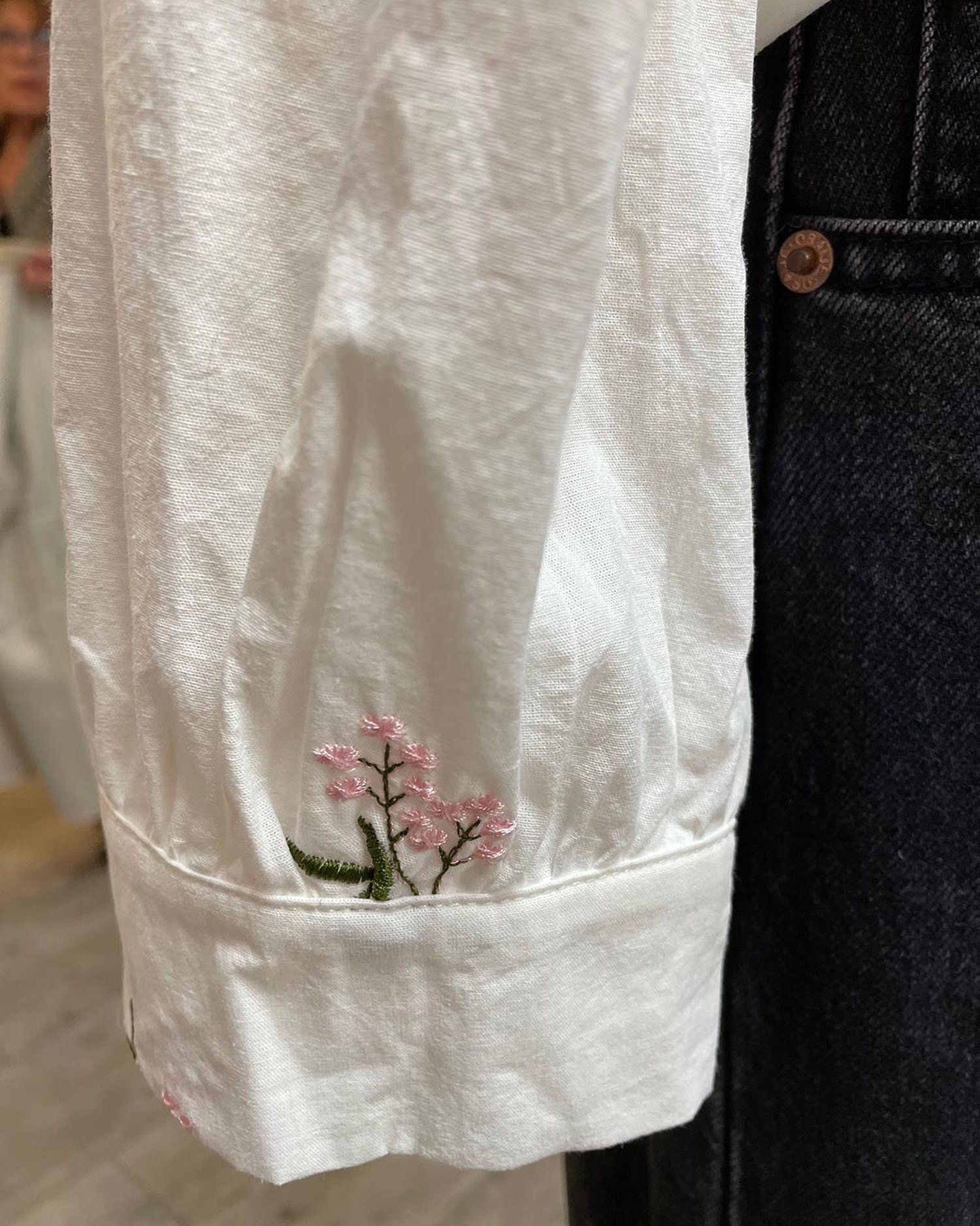 Chemisier en coton blanc à fleurs roses