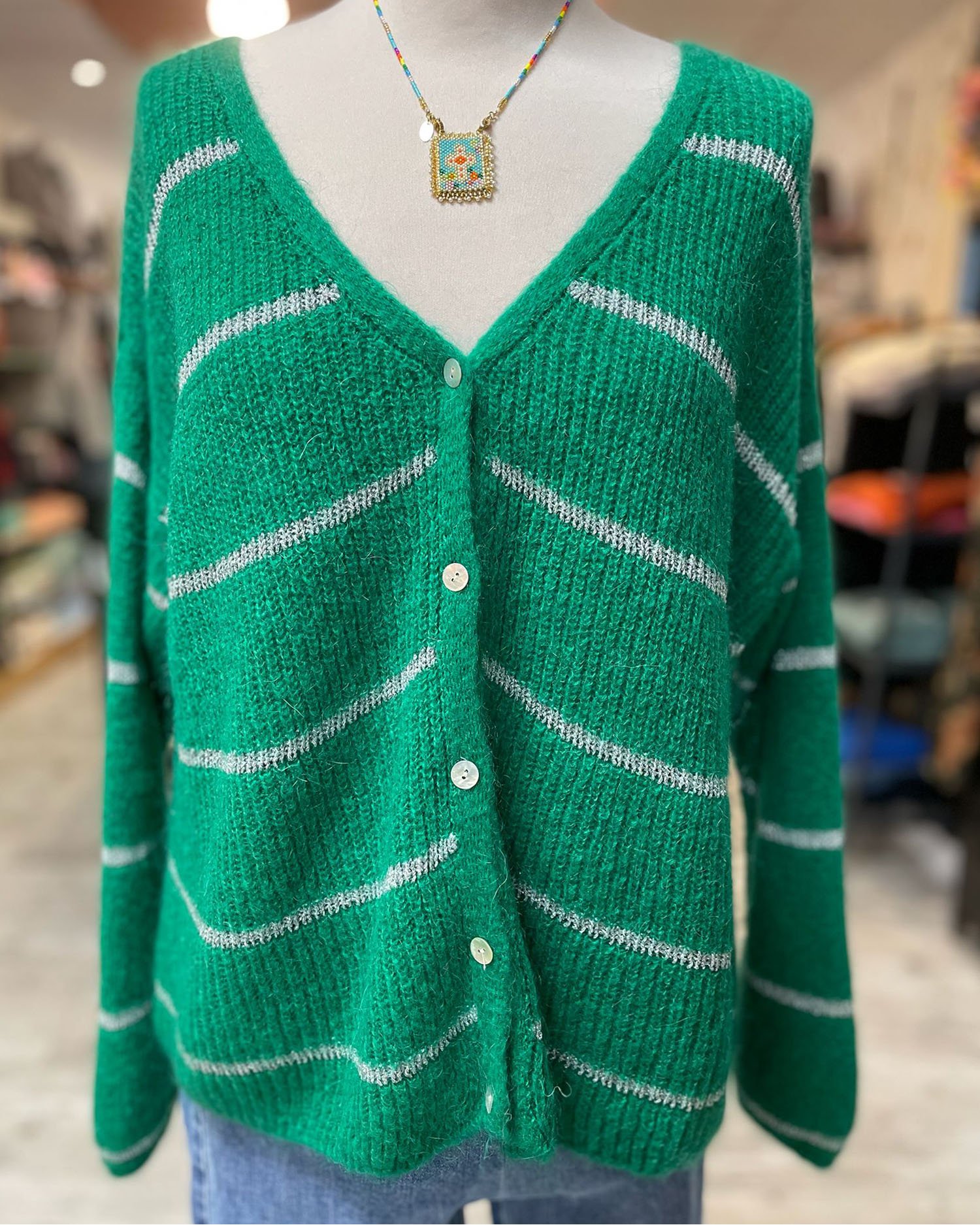 • Gilet à rayures argentées