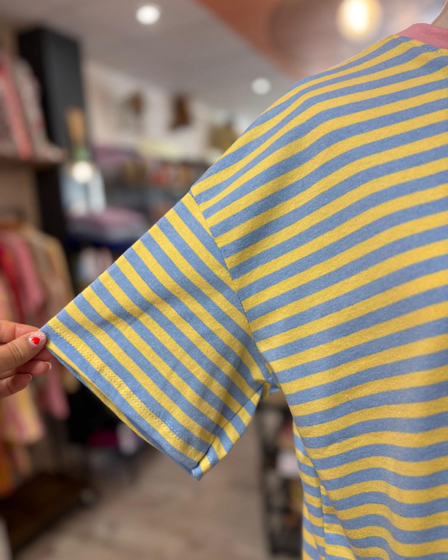 Tee shirt à rayures jaune et bleu