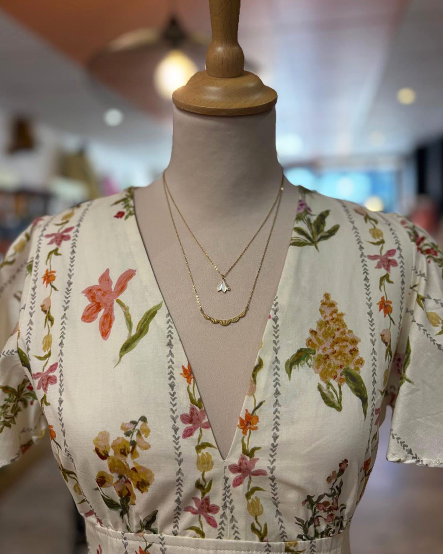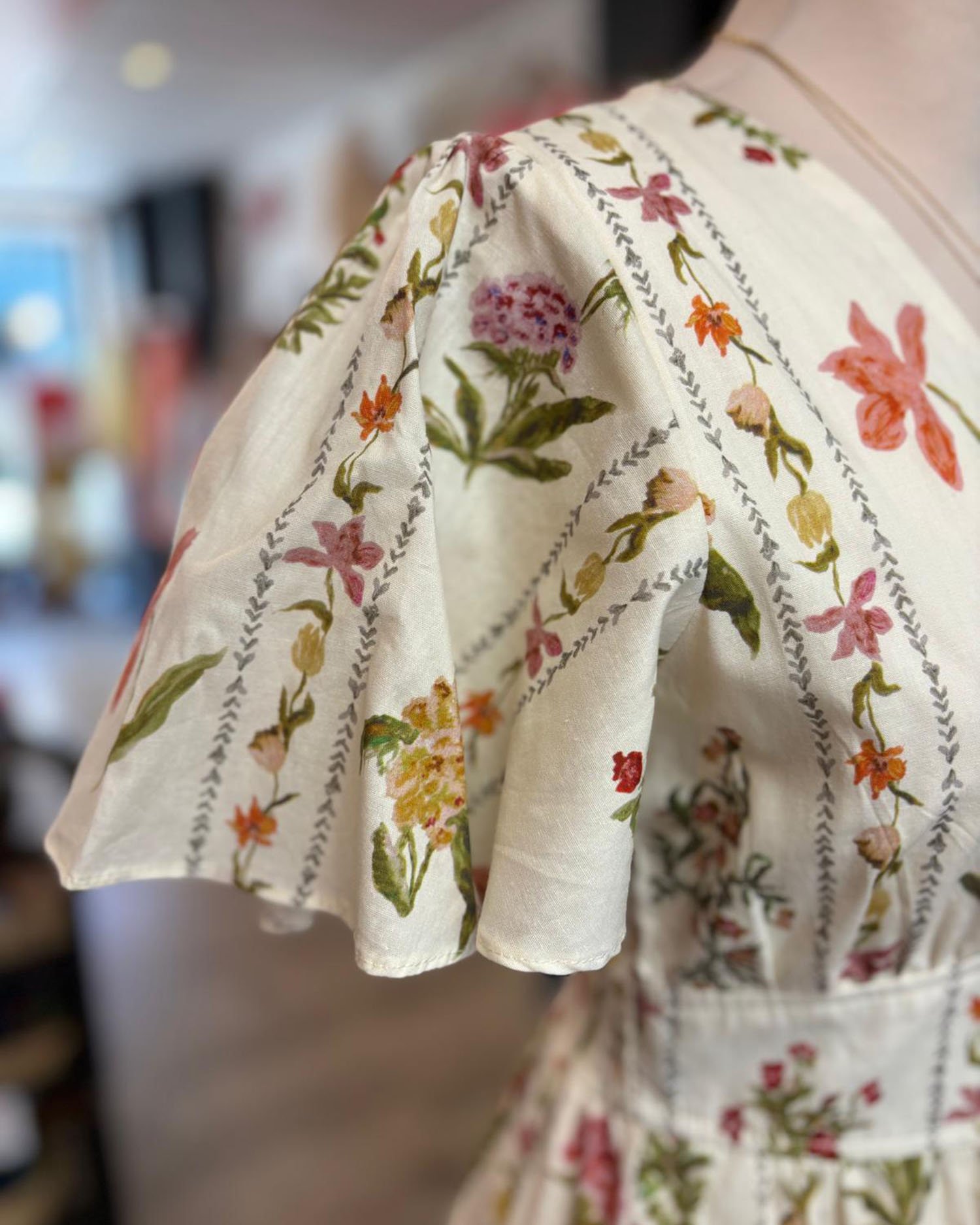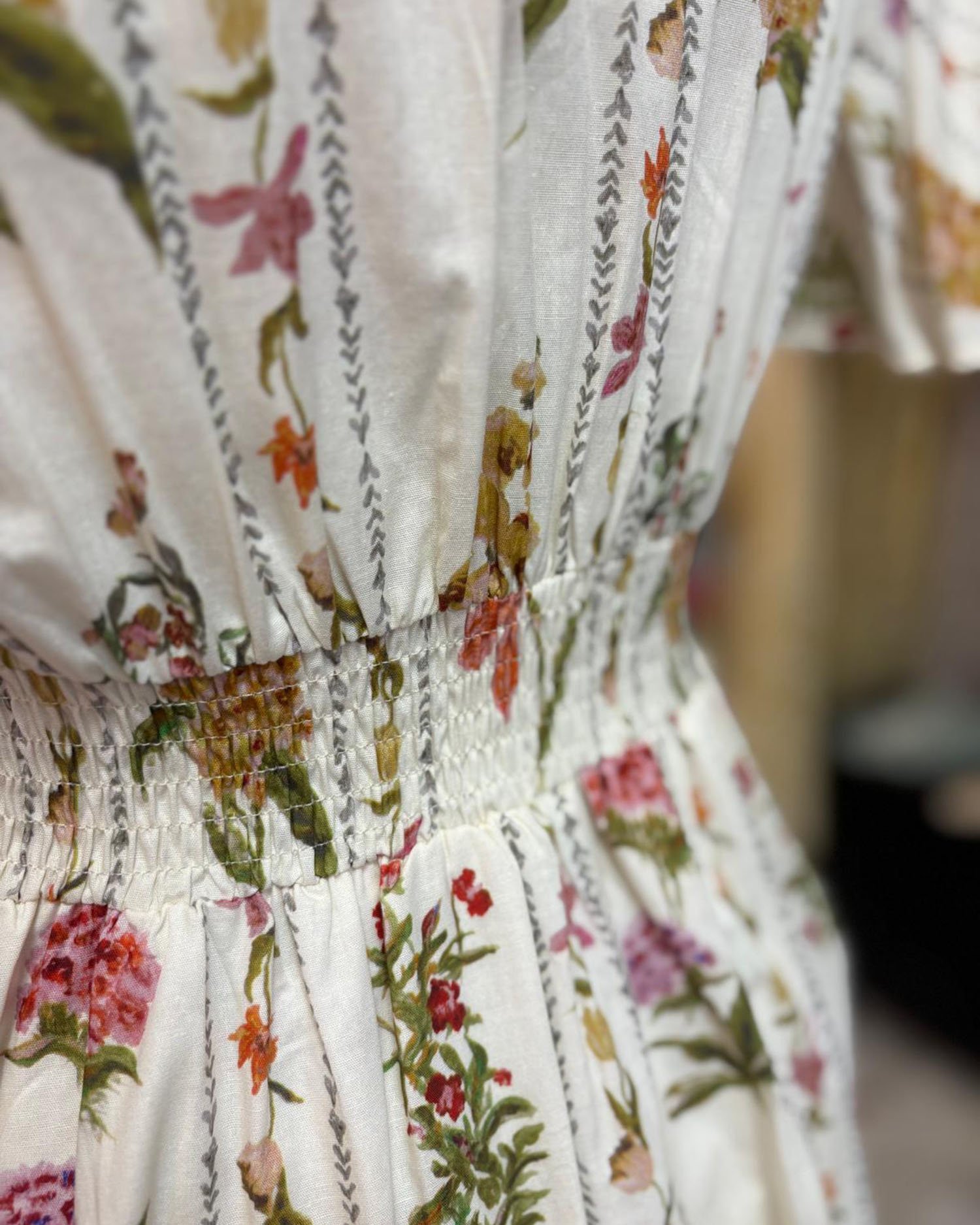 Robe en coton beige avec des fleurs multicolores