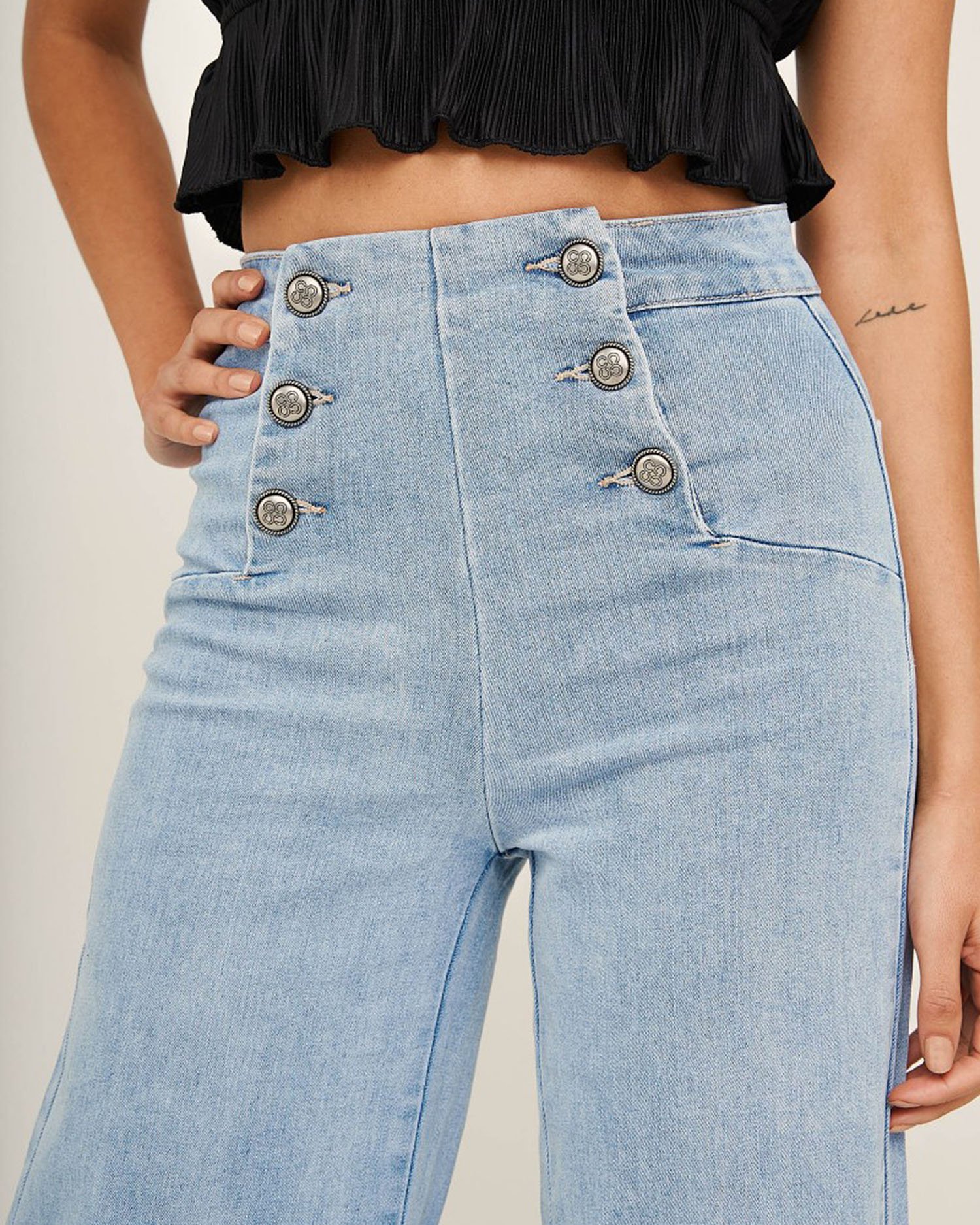 Jean's épais Victorine à pont en denim bleu clair à boutons argentés