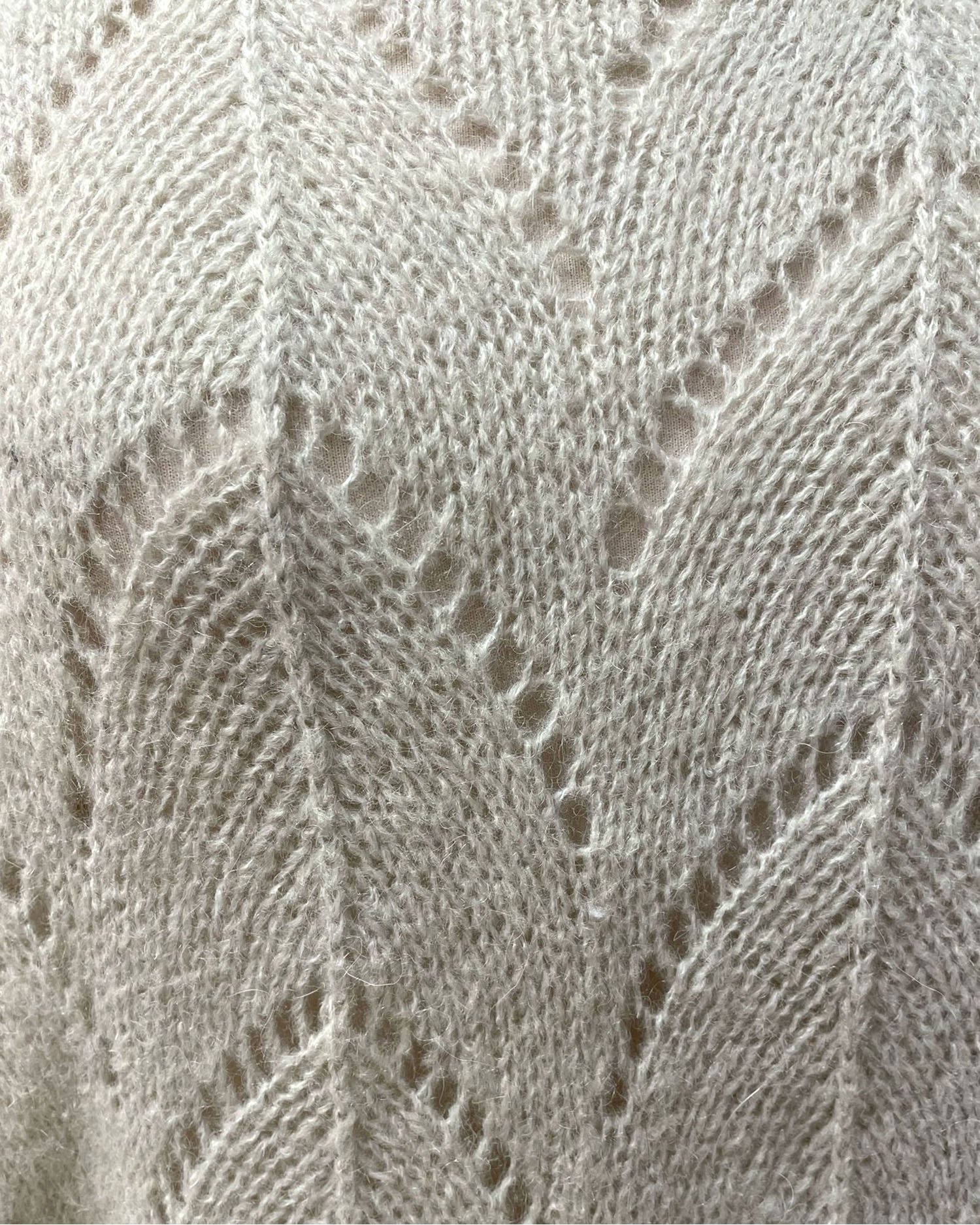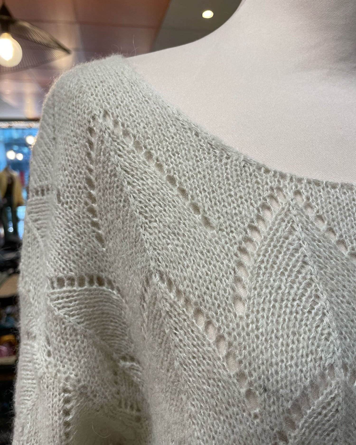 Ce pull est disponible en plusieurs coloris : noir, bleu marine, bleu électrique, gris, canard, violet, fuchsia, vieux rose, rouille et vermillon. Avec sa maille ajourée, il se porte facilement pour l'entre-saison.